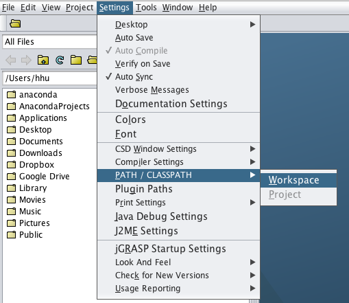 And extracting the zip file. The name of the extracted file is the folder bookClasses. Save this folder in your CMPT-201 folder. We will be using components in this software at various times throughout the semester, so you need to tell JGrasp where it is located. This is known as setting an extra classpath.